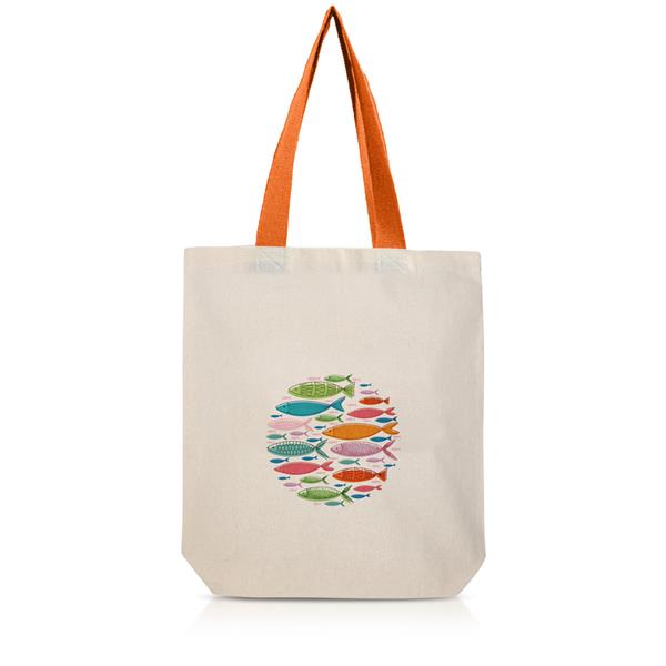 Klasyczna torba bawełniana w naturalnym kolorze z dwoma długimi, kolorowymi uchwytami. Wykonana z grubego, wytrzymałego materiału o gramaturze: 180 g/m². Długość ucha: ok. 57 cm.