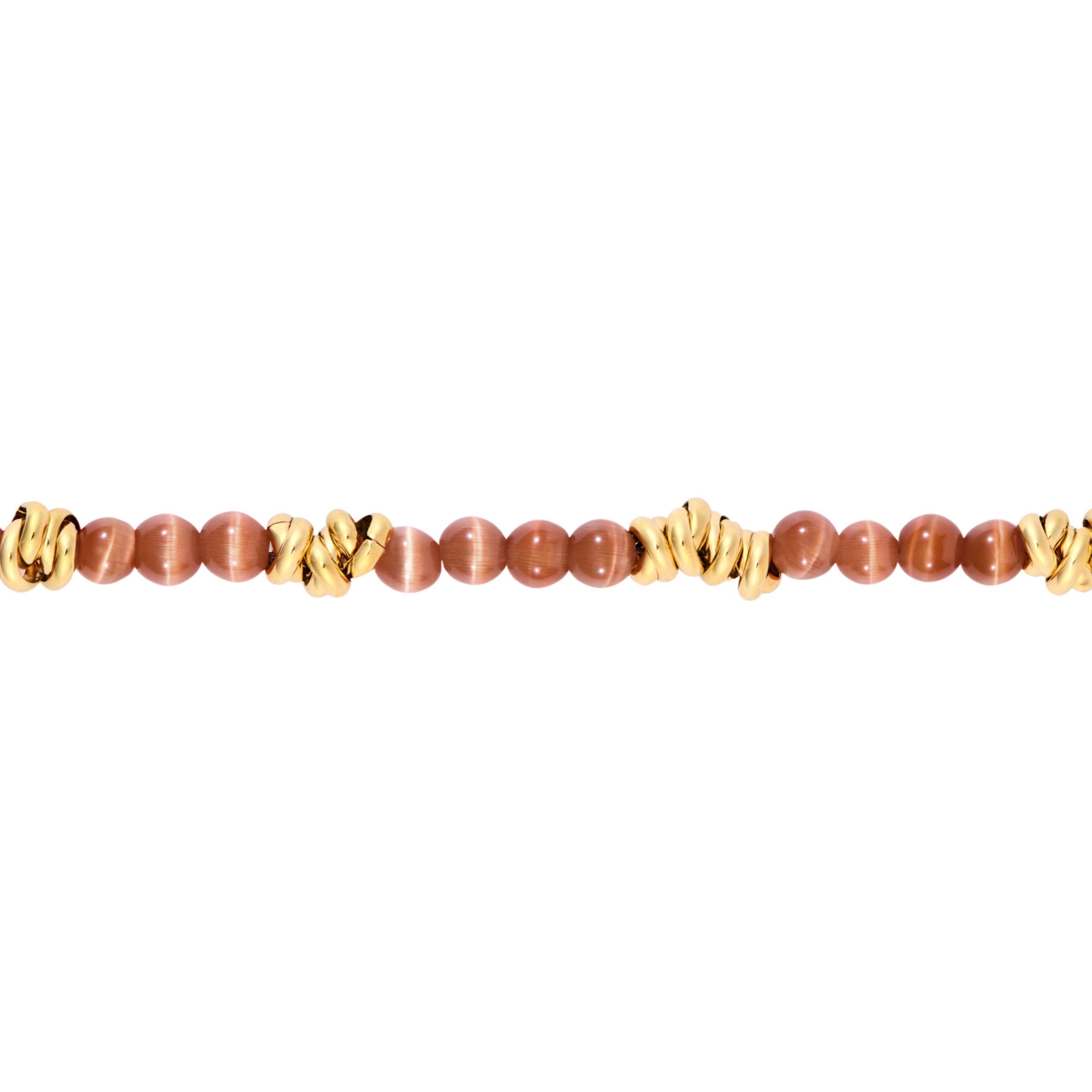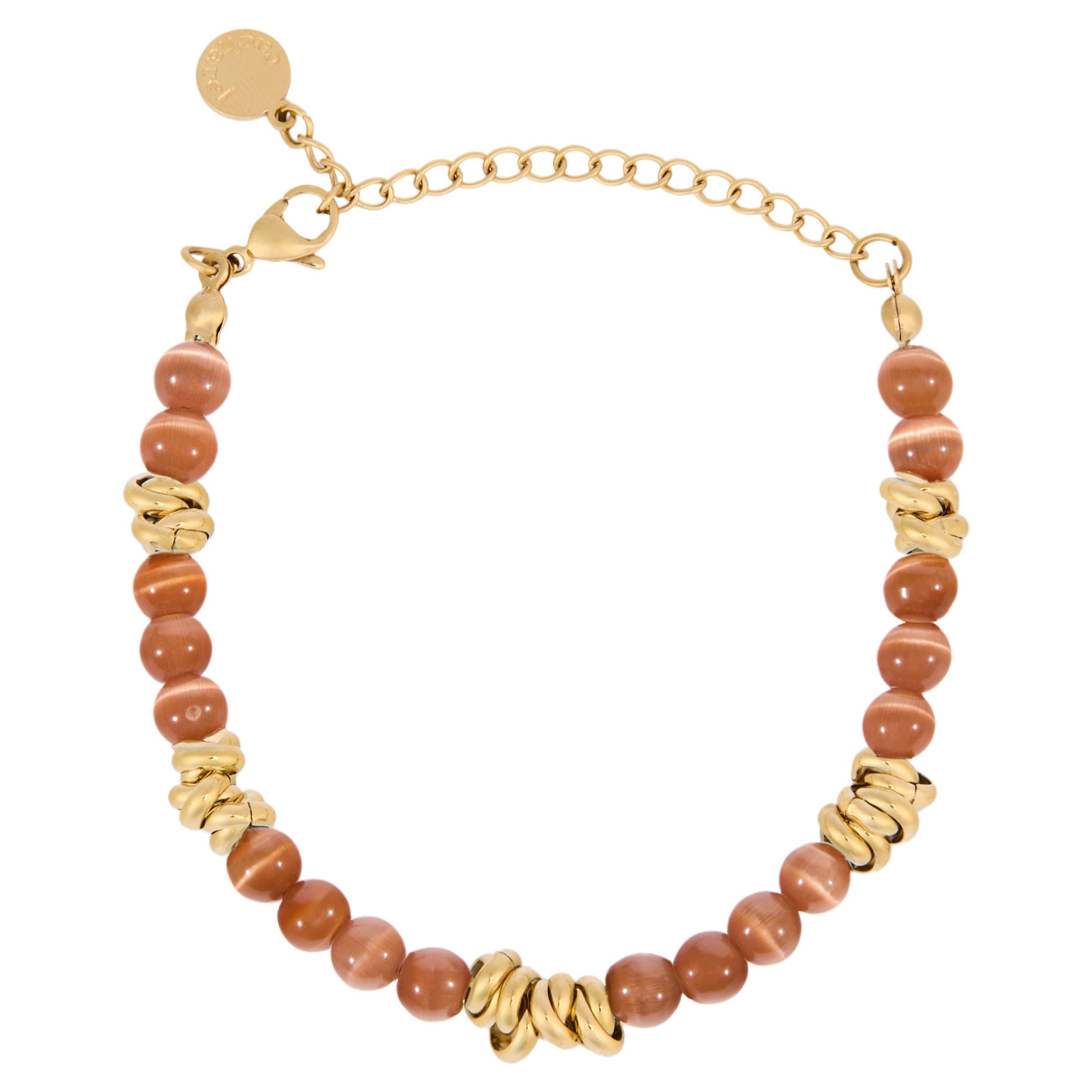 Bransoletka Imogene łączy rząd kolorowych koralików ze złotymi, tworząc swobodny, hobo-owy akcent, zachowując jednocześnie wyrafinowany, swobodny styl. Zapięcie sygnowane blaszką Cacharel dodaje subtelnej nuty koloru i stylu każdej stylizacji. Dostępna w kolorze złamanej bieli, granatu lub ochry.