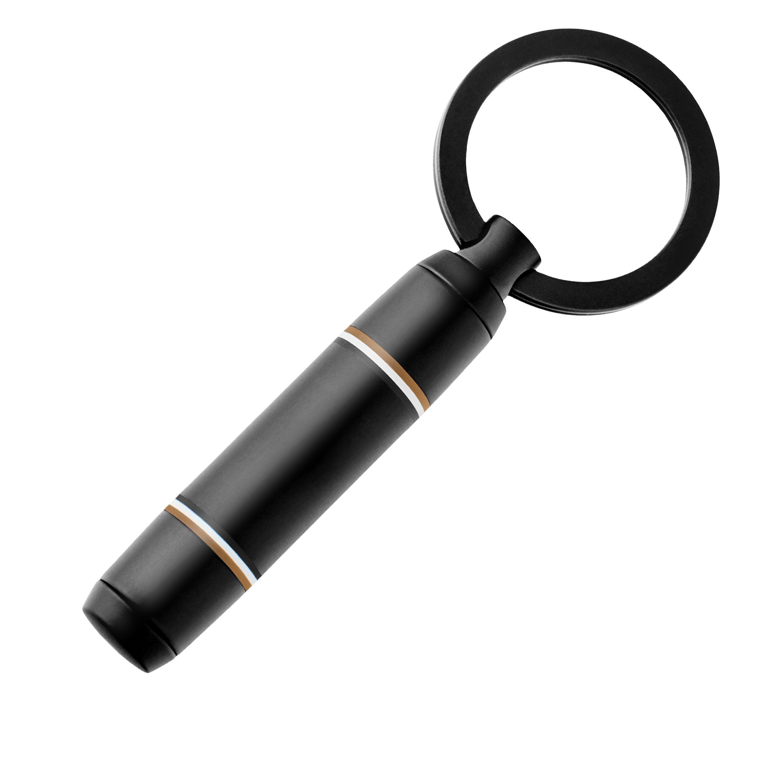Ten brelok charakteryzuje się wyrazistym, graficznym wzorem inspirowanym stylem uniwersyteckim, nadając mu wyrazisty i nowoczesny charakter. Wykonany wyłącznie w kolorze czarnym, wyróżnia się wyrazistym logo Double B z wyraźnym białym konturem, obramowanym niezwykle cienkimi, kultowymi paskami, które tworzą ostry kontrast wizualny. Matowe, czarne wykończenia podkreślają nowoczesny wygląd, a grawerowany podpis HUGO BOSS dodaje wyrafinowanego detalu. Rurowy kształt zapewnia czysty, funkcjonalny profil, idealny do codziennego użytku.