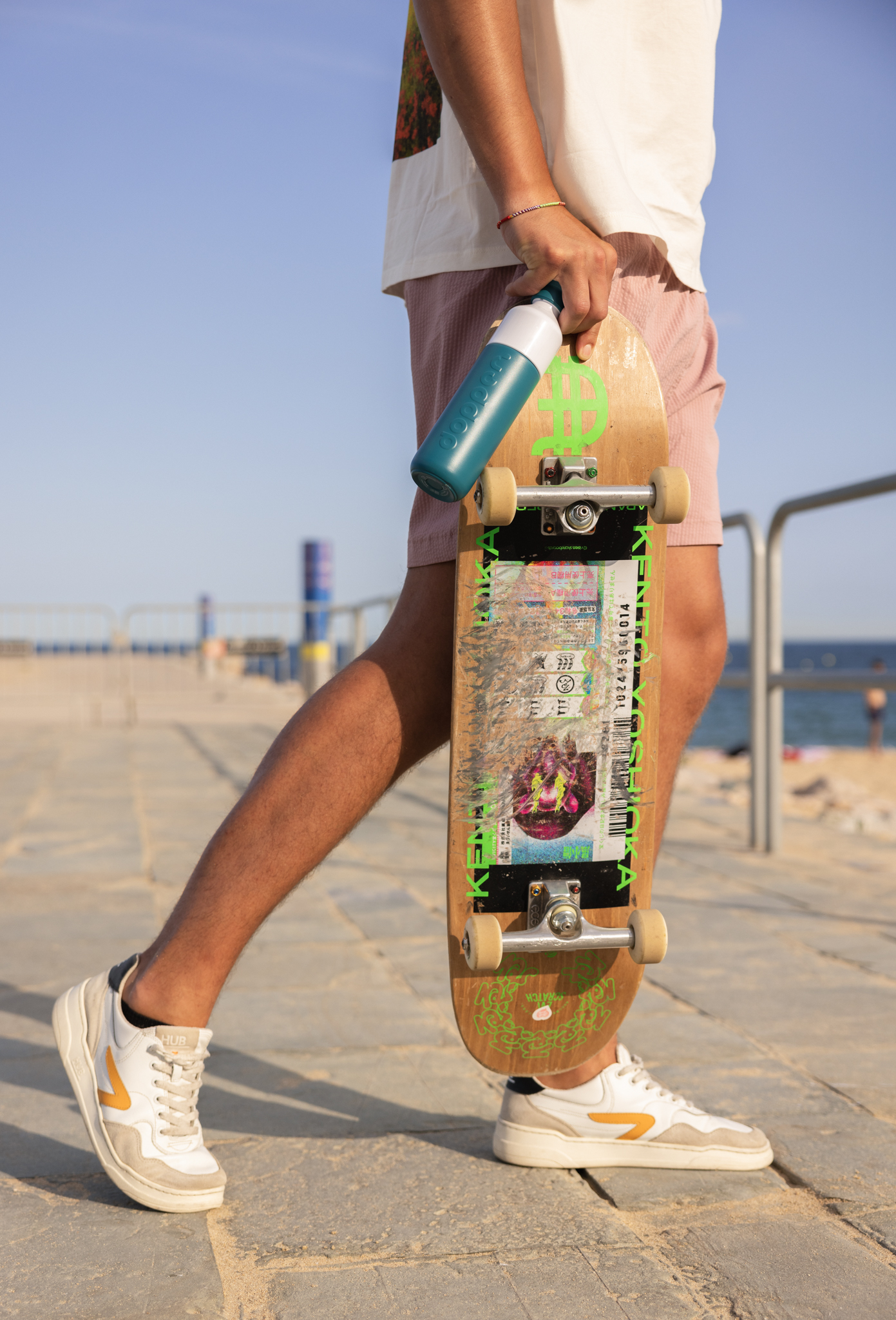 Producent nie zgadza się na umieszczanie logotypów firm z następujących branż:a. Partie polityczne (bez względu na ich poglądy)b. Przemysł zbrojeniowyc. Branża hazardowad. Przemysł tytoniowye. Branża erotycznaf. Firmy, które źle traktują zwierzętag. Marki oferujące swoje produkty w butelkach PET (np. Spa, Coca-Cola itp.)h. Firmy działające w branżach szkodliwych dla środowiska, takich jak ropa naftowa, gaz i górnictwo. Dbasz o środowisko? Lubisz ładny i praktyczny design? Jeśli tak, to termiczna butelka wielokrotnego użytku marki Dopper będzie idealnym wyborem. Unikatowy wzór autorstwa Rinke van Remrtela, najwyższej jakości materiały użyte do produkcji (bez BPA i ftalanów) oraz praktyczny kubek ukryty w zatyczce sprawiają, że jest to czego potrzebujesz! Butelka składa się tylko z trzech części – dzięki czemu można bardzo szybko umyć ją ręcznie lub po prostu wrzucić do zmywarki. Warto również dodać, że butelki Dopper stały się bardzo ważną częścią kultury holenderskiej. Zawdzięczają to nie tylko wyjątkowemu wzornictwu i jakości wykonania, ale przede wszystkim misji społecznej. Dzięki używaniu butelek wielokrotnego użytku możemy zmniejszyć ilość odpadów plastikowych. Dodatkowo 5% zysków firmy trafia bezpośrednio do fundacji, która wspiera między innymi projekty związane z dostarczaniem wody pitnej w Nepalu i oczyszczaniu oceanów. Dane techniczne: Pojemność: 350 ml Trzy części, bardzo łatwe do czyszczenia Można myć w zmywarce do 65 ° C / 149 ° F Do ciepłej i zimnej wody Utrzymuje ciepło do 9 godzin / zimno do 24 godzin Nie nadaje się do napojów mlecznych Wymiary i waga: Średnica 6 cm Wysokość 23,6 cm Waga 270 g Materiały: Stal nierdzewna 18/8 (butelka i zakrętka) PP – polipropylen (kubek) Tritan (biały/czarny kubek) Silikon (uszczelka w czapeczce i kubku) Bez BPA i ftalanów