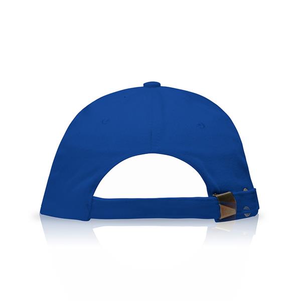 6-panelowa czapka dla dorosłych (obwód głowy: 58 cm), zapinana na metalową klamrę, z bawełny o gramaturze 225 g/m2.