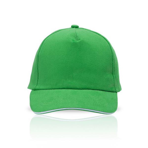 Czapka bejsbolówka z daszkiem z 5 panelami, wykonana z czesanej bawełny, z zapięciem na rzep.