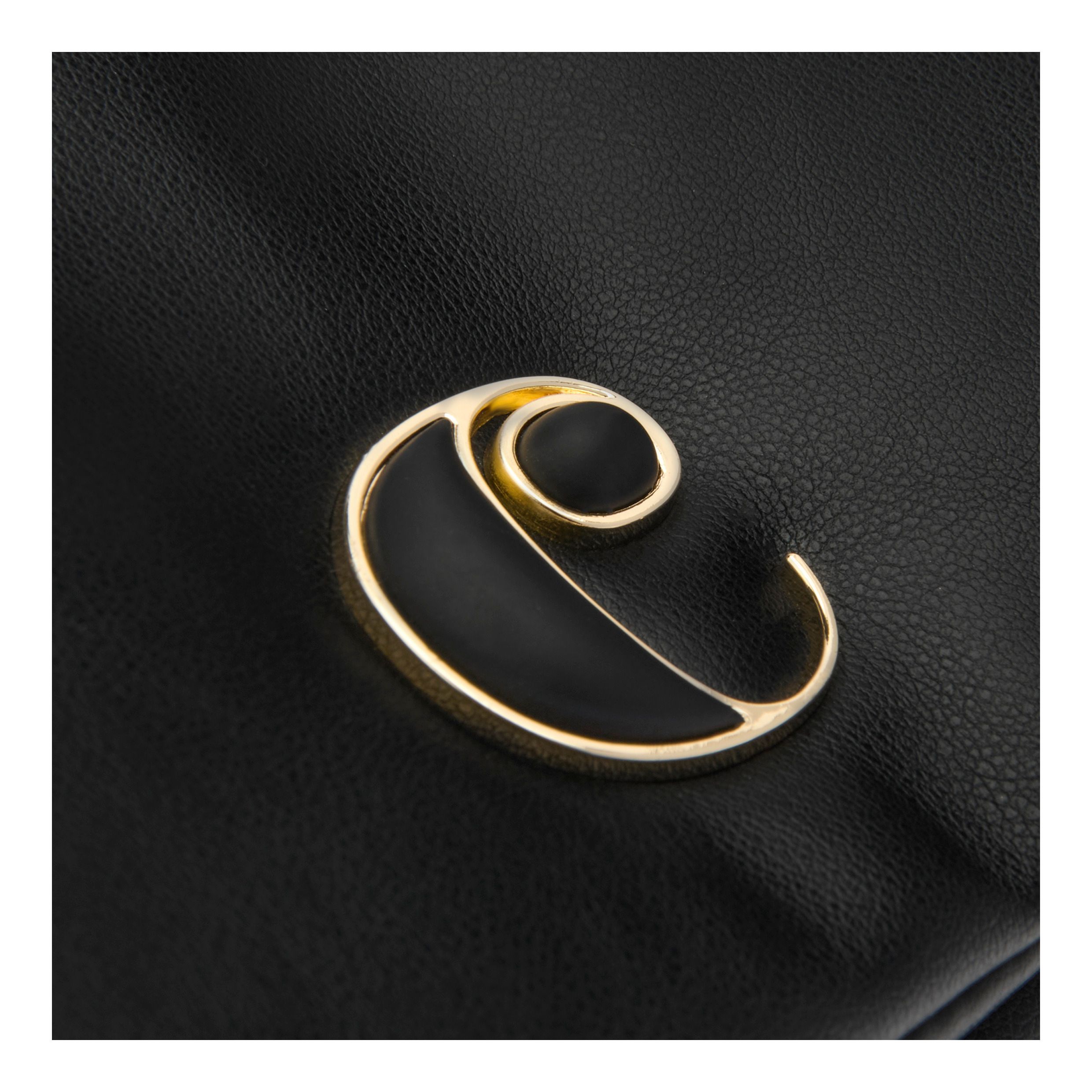 Torba `Vivienne` w kolorze czarnym to idealne połączenie miękkości i uroku, wykonane z wysokiej jakości, miękkiej, matowej skóry wegańskiej (PU) z efektem wyściełania, który podkreśla jej wyrafinowaną sylwetkę. Złote akcenty wnoszą ciepło i luksus do projektu, a złota tabliczka z logo `C` z czarnym wykończeniem ABS płynnie pasuje do korpusu torby, zapewniając dopracowany i spójny wygląd. Ta wersja posiada charakterystyczny pasek z elegancką kokardą i łańcuszkiem, oferując zabawny, ale wyrafinowany element. Subtelne logo Cacharel dopełnia jej ponadczasowy urok, a przestronne wnętrze sprawia, że idealnie nadaje się do codziennego użytku, łącząc praktyczność z elegancką estetyką.