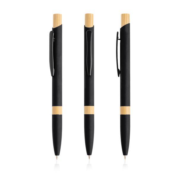 Długopis aluminiowy z bambusowymi detalami. Ten długopis piszący na niebiesko ma nowoczesny design, łączący metal z naturalnym bambusem, tworząc niezapomniany prezent.