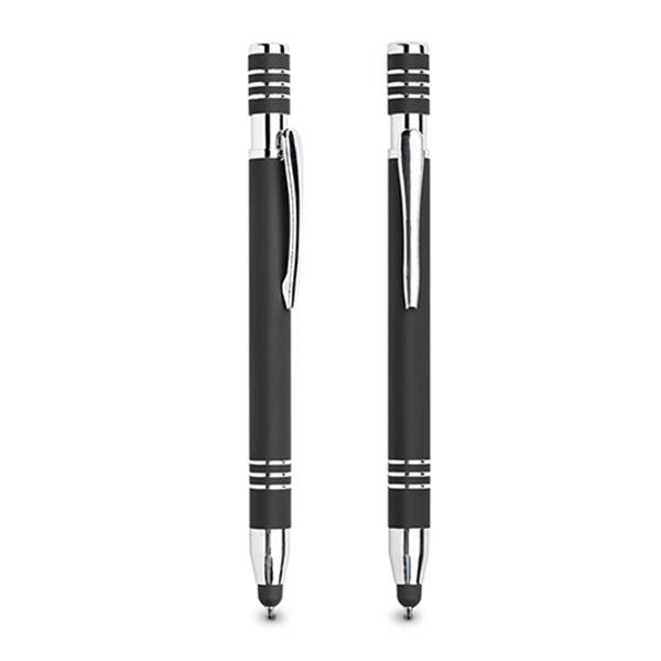 Aluminiowy długopis touch pen z gumowanym wykończeniem.