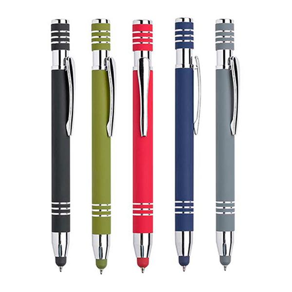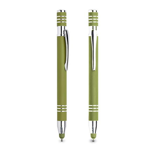 Aluminiowy długopis touch pen z gumowanym wykończeniem.