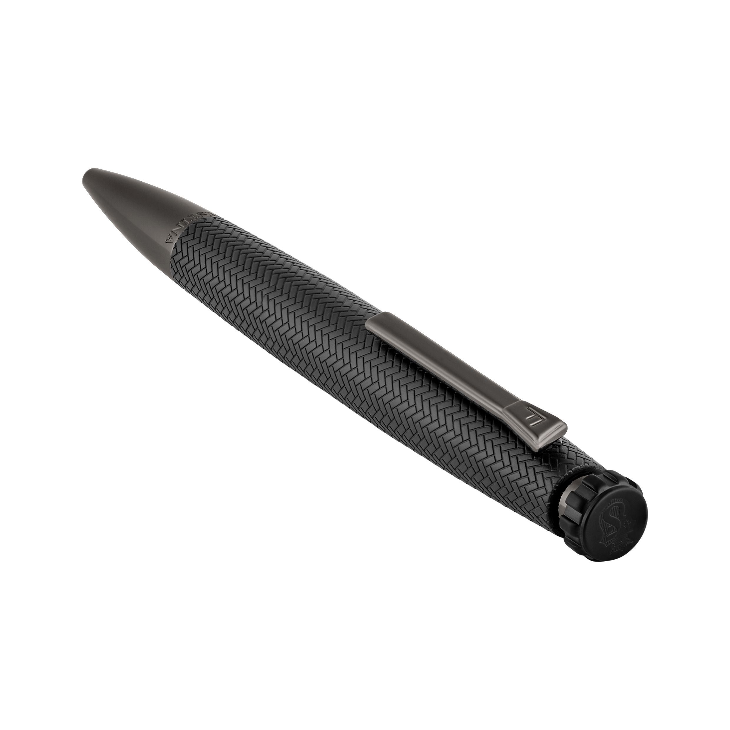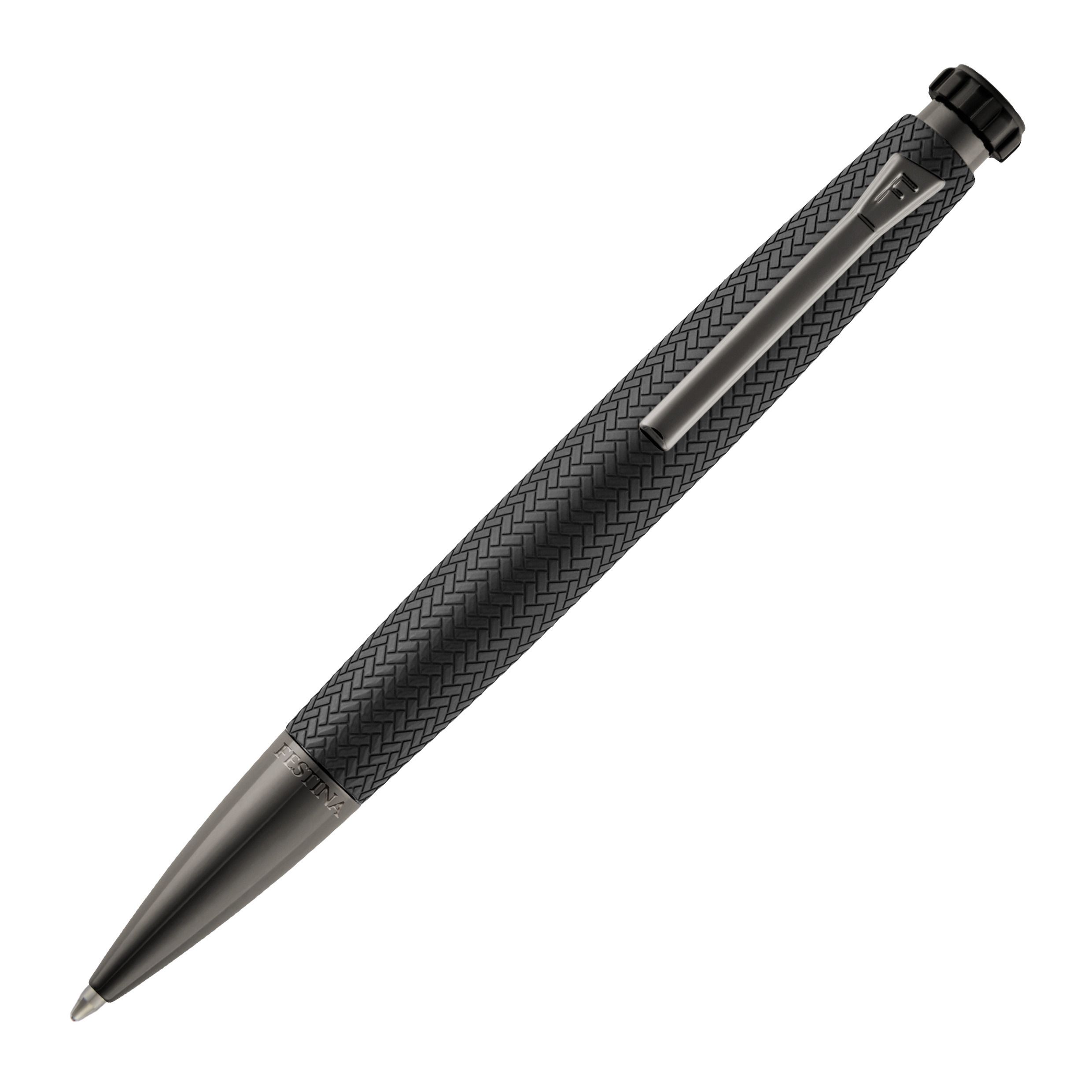 Długopis Interlace w kolorze czarnym i grafitowym nawiązuje do bestsellerowego kształtu Chronobike i wzbogacony jest o fakturę powierzchni inspirowaną splotem, zaczerpniętą z linii o tej samej nazwie, nadając głębi i wyrafinowania jego zwężającej się, aerodynamicznej sylwetce. Ta nowa edycja wprowadza wyrafinowany, luksusowy wymiar, a logo wygrawerowane na charakterystycznym elemencie górnej części – przypominającym guzik zegarka – stanowi charakterystyczny znak rozpoznawczy Festiny. Prezentowany w pięknej, stonowanej, czarnej palecie barw z elementami grafitowymi, oferuje nowoczesny, aktywny charakter z polerowanym wykończeniem.
