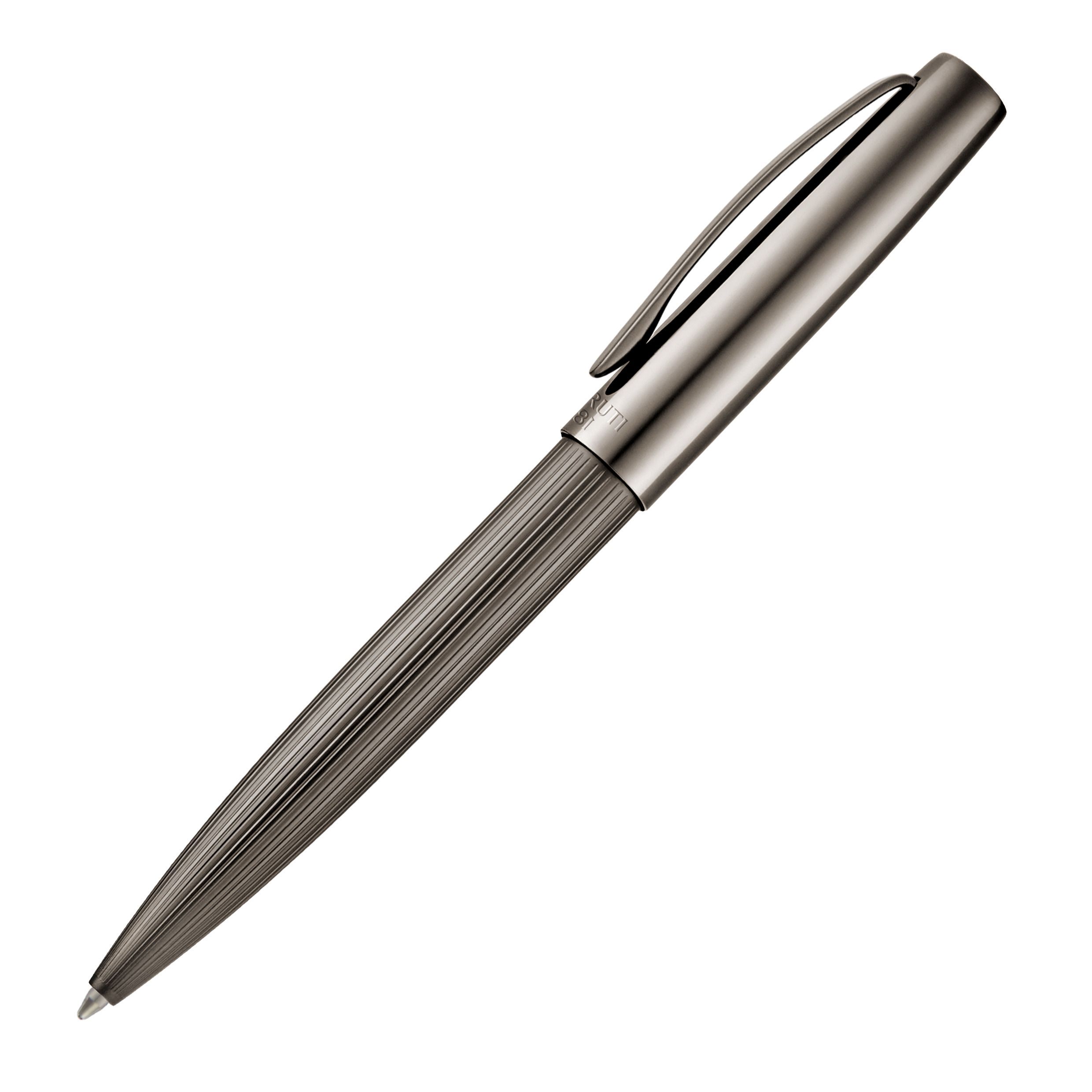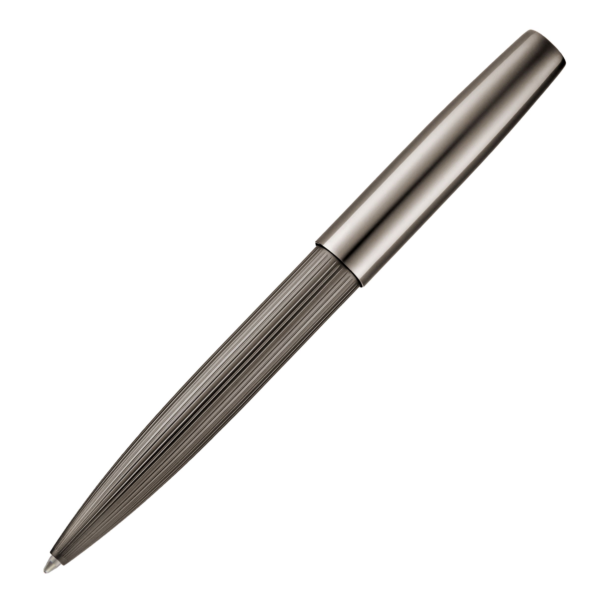 Długopis Cerruti 1881 w kolorze brązu armatniego ucieleśnia luksusowy minimalizm dzięki gładkiej skuwce z wygrawerowanym nowym, dwurzędowym logo Cerruti 1881, kontrastującym z dolną częścią korpusu grawerowaną w prążki. Głębokie, eleganckie wykończenie w kolorze brązu armatniego nadaje głębi i nowoczesnej elegancji czystej, architektonicznej sylwetce.