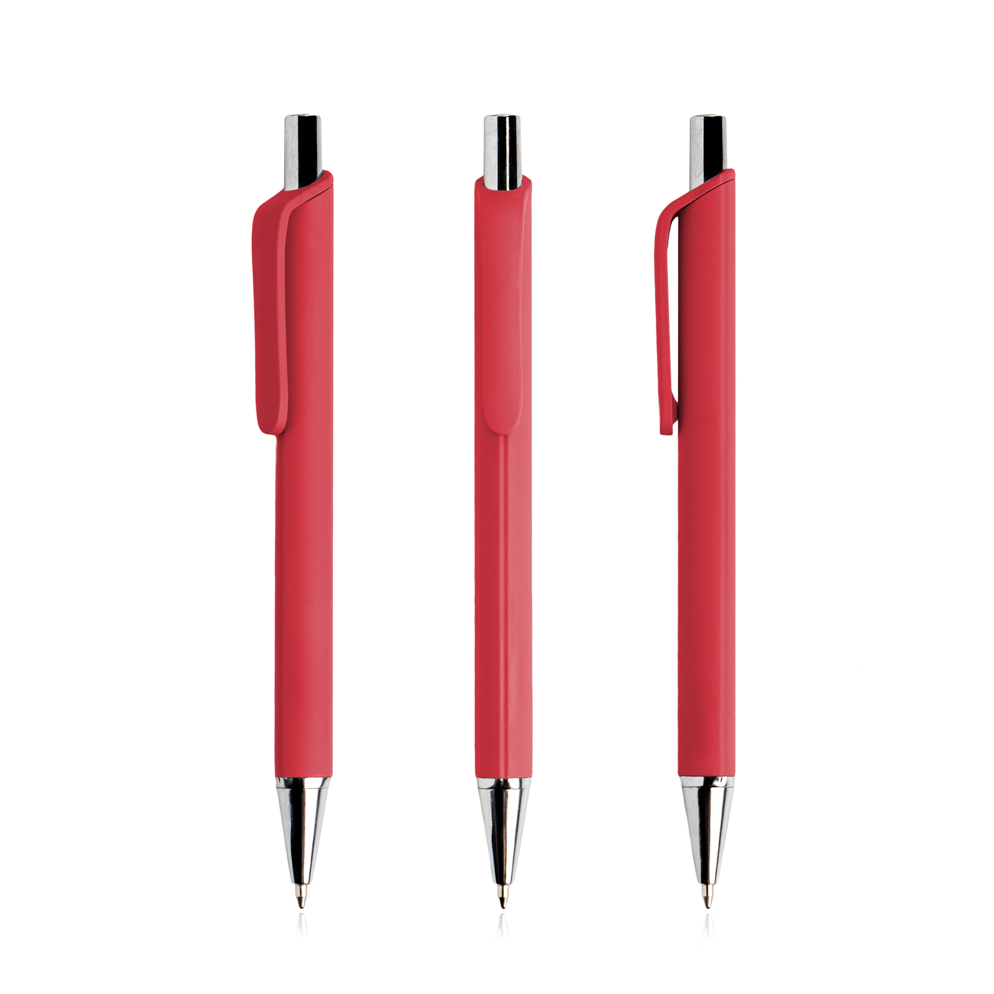 Długopis z ergonomicznym, trójkątnym kształtem, zapewniający komfort pisania przez długi czas. Gumowana powłoka gwarantuje pewny, antypoślizgowy chwyt. Dostępny w delikatnych pastelowych kolorach, łącząc styl i funkcjonalność. Idealny do codziennego użytku w biurze, szkole lub w domu. Pisze na czarno.