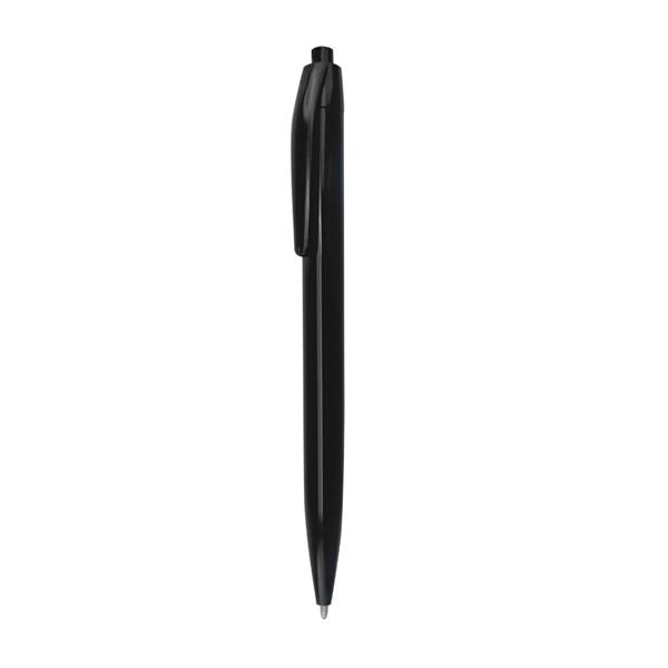 Plastikowy długopis z  mechanizmem wciskanym, pisze na czarno.