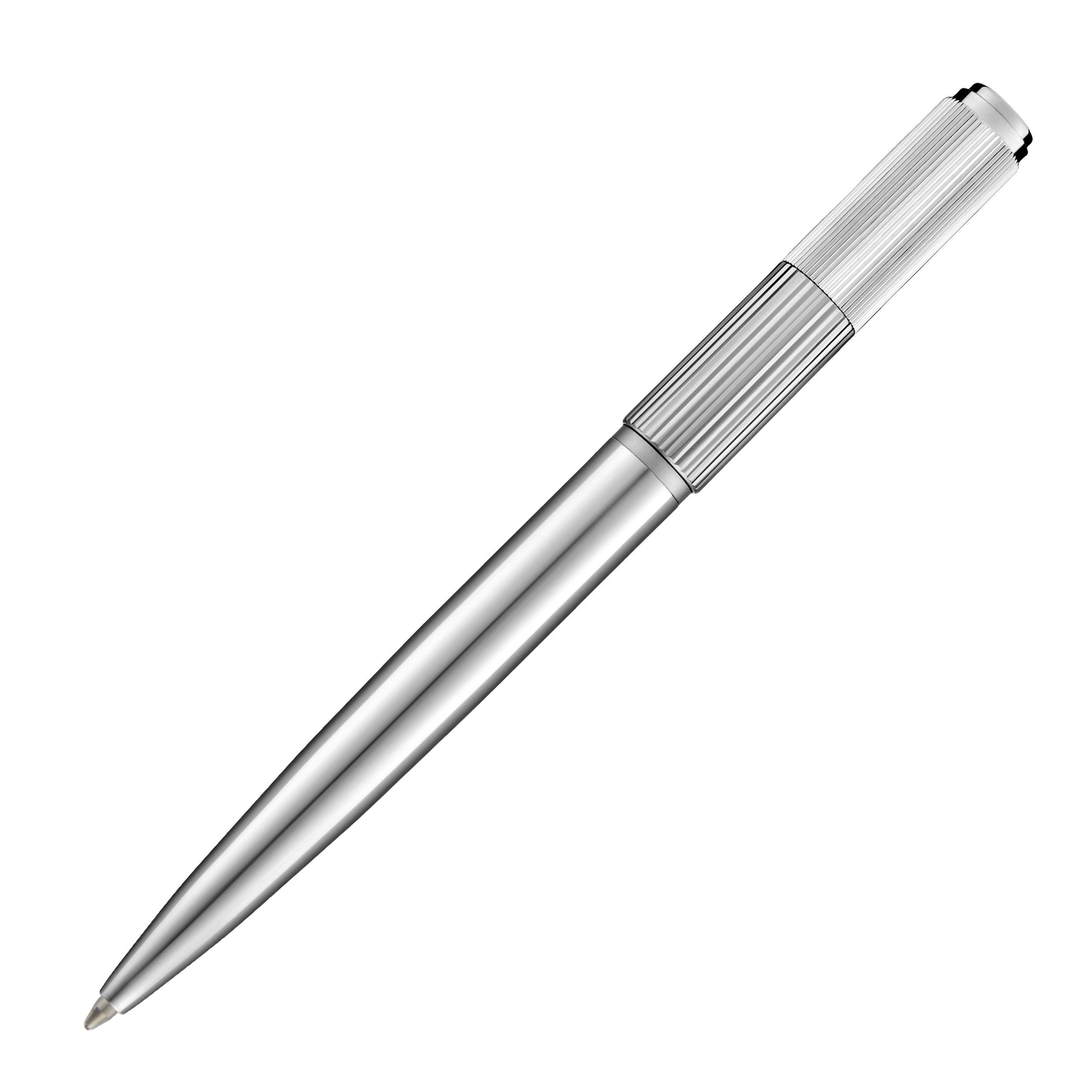 Długopis Striade wprowadza wyrafinowany akcent do klasycznej sylwetki, eksplorując grę dwóch prążkowanych łusek rozmieszczonych na skuwce. Ten kontrast nadaje projektowi subtelnego, industrialnego ducha, dodając mu tekstury i charakteru, jednocześnie zachowując minimalistyczny, zrównoważony charakter narzędzia do pisania. Wykończony w wyrazistym chromie z kontrastującymi błyszczącymi i matowymi teksturami, długopis sprawia wrażenie starannie zaprojektowanego, z przemyślanymi, graficznymi detalami, które podkreślają jego ponadczasową formę.