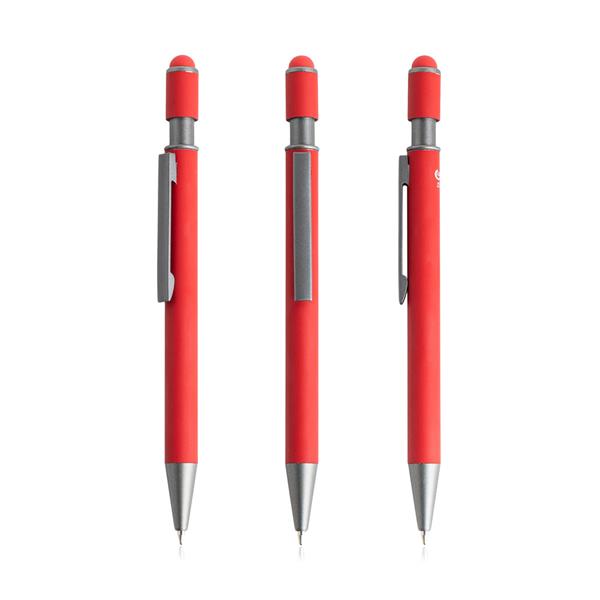 Długopis z korpusem wykonanym z aluminium z recyklingu, z gumowanym wykończeniem, który łączy komfort użytkowania z troską o środowisko. Wyposażony w mechanizm przyciskowy z dotykową końcówką, idealną do obsługi ekranów dotykowych. Zintegrowany spinner umieszczony na górze długopisu stanowi doskonały detal na chwile relaksu, pomagając redukować stres podczas użytkowania. Płynnie piszący niebieskim tuszem, długopis łączy nowoczesny design, funkcjonalność i zrównoważone podejście w jednym produkcie.