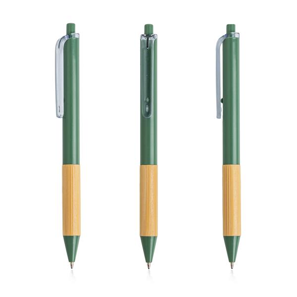 Długopis wykonany z ABS z recyklingu, z półprzezroczystym klipsem oraz bambusowym wykończeniem w strefie uchwytu, łączący nowoczesny design z odpowiedzialnością ekologiczną. Wyposażony w mechanizm przyciskowy zapewniający wygodę użytkowania, pisze czarnym tuszem. Idealny do notatek, nauki oraz zastosowań profesjonalnych. Dostępny w różnych, żywych kolorach – łączy styl, trwałość i lekkość, stanowiąc praktyczną i elegancką opcję do codziennego użytku.