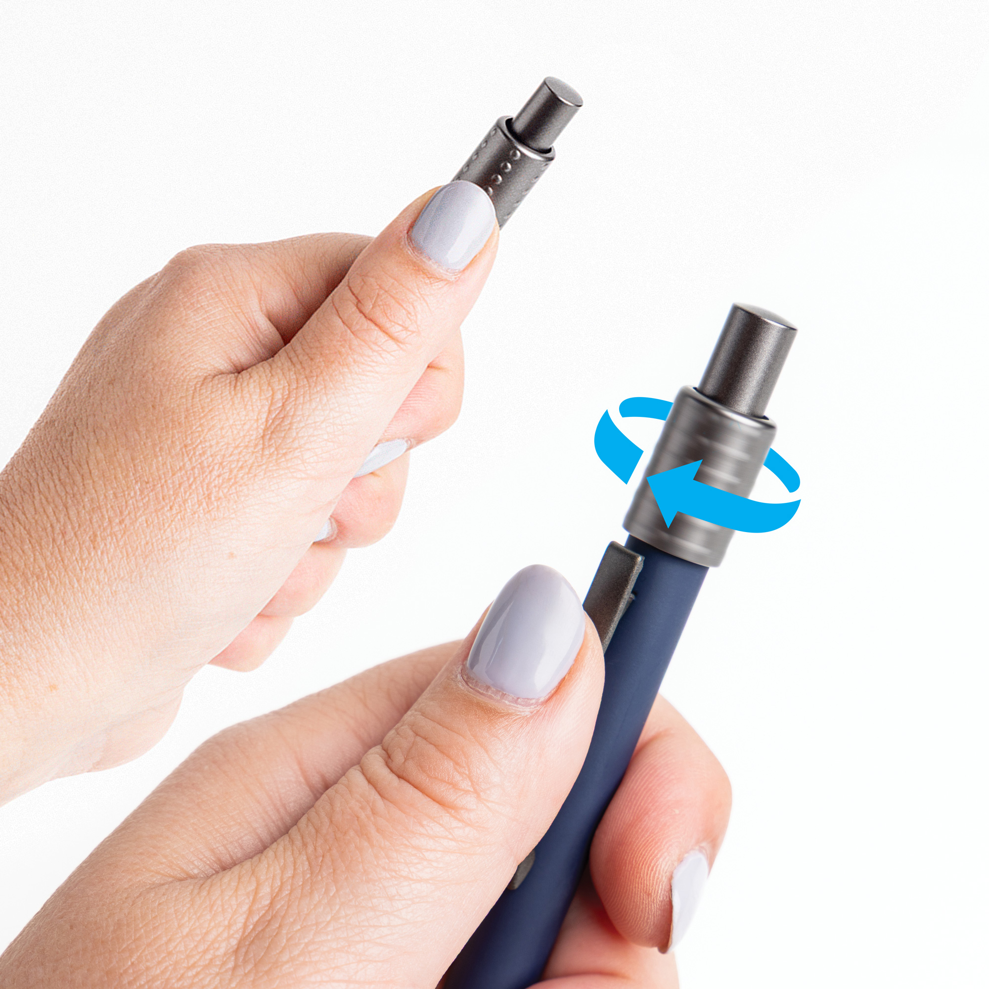 Długopis z aluminiowym korpusem i gumowanym wykończeniem, zapewniający komfortowe i stylowe pisanie. Wyposażony w końcówkę i przycisk z tworzywa ABS oraz klips ze stali nierdzewnej, łączy trwałość z nowoczesnym designem. Zintegrowany spinner na górze pełni funkcję antystresową, czyniąc go interaktywnym i zabawnym gadżetem. Czarny wkład JUMBO i waga zaledwie 15 g sprawiają, że to lekkie i praktyczne narzędzie do codziennego użytku