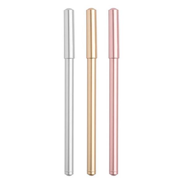 Żelowy długopis z wykończeniem imitującym metal.