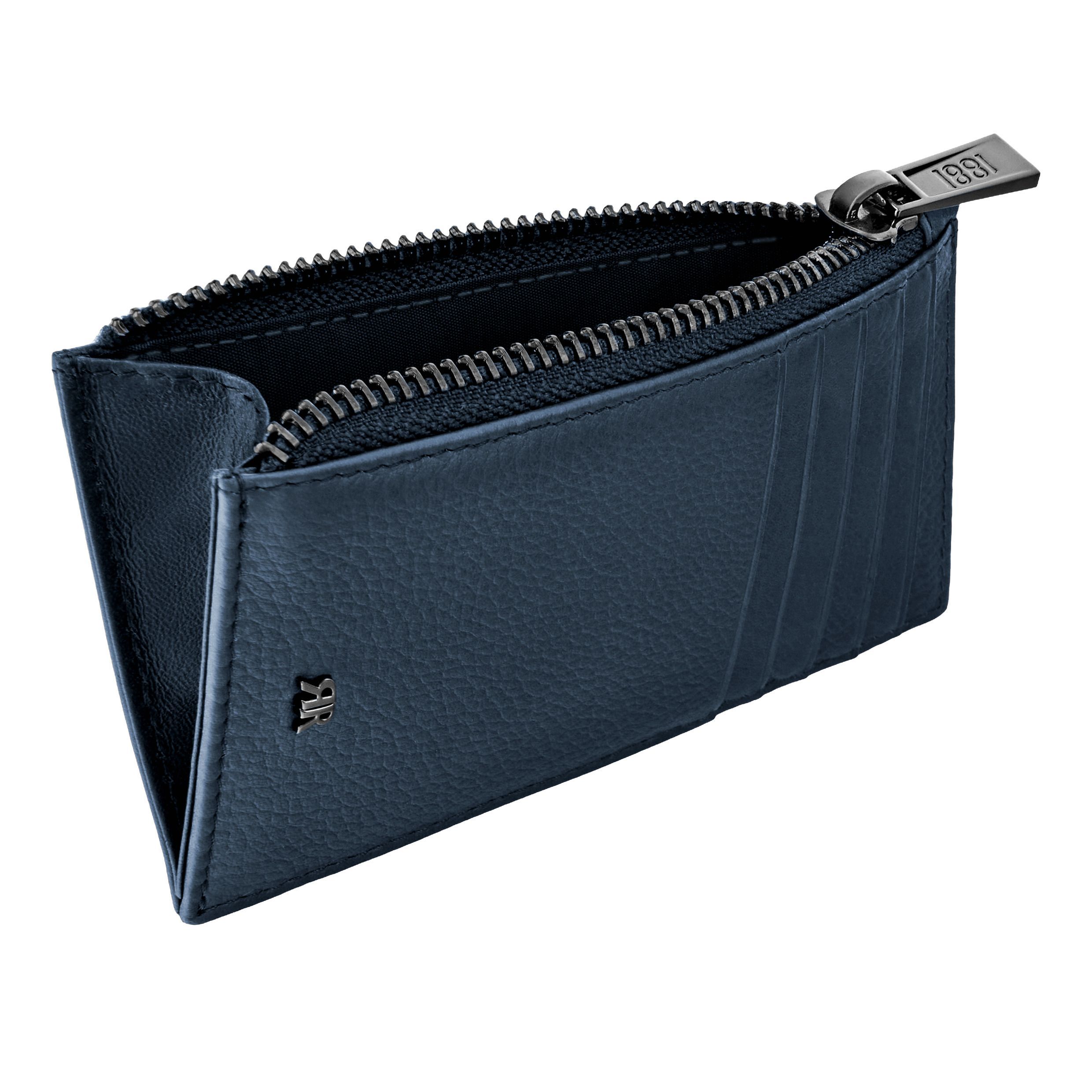 Zapinany na suwak portfel na karty CERRUTI 1881 Jefferson jest kompaktowy i niezwykle funkcjonalny, oferując pięć przednich przegródek na karty oraz przestronną, zapinaną na suwak kieszeń, która pozwala na uporządkowane przechowywanie najpotrzebniejszych rzeczy w smukłej sylwetce. Wykonany ze starannie dobranej, ziarnistej skóry najwyższej jakości, zapewnia trwałość i dyskretną elegancję. Metalowe detale, wzbogacone luksusowym suwakiem z grawerunkiem z 1881 roku, dodają głębi i wyrafinowania, a miniaturowe logo z podwójnym R w kolorze grawerunku uzupełnia elegancką, granatową wersję o subtelny, współczesny charakter.