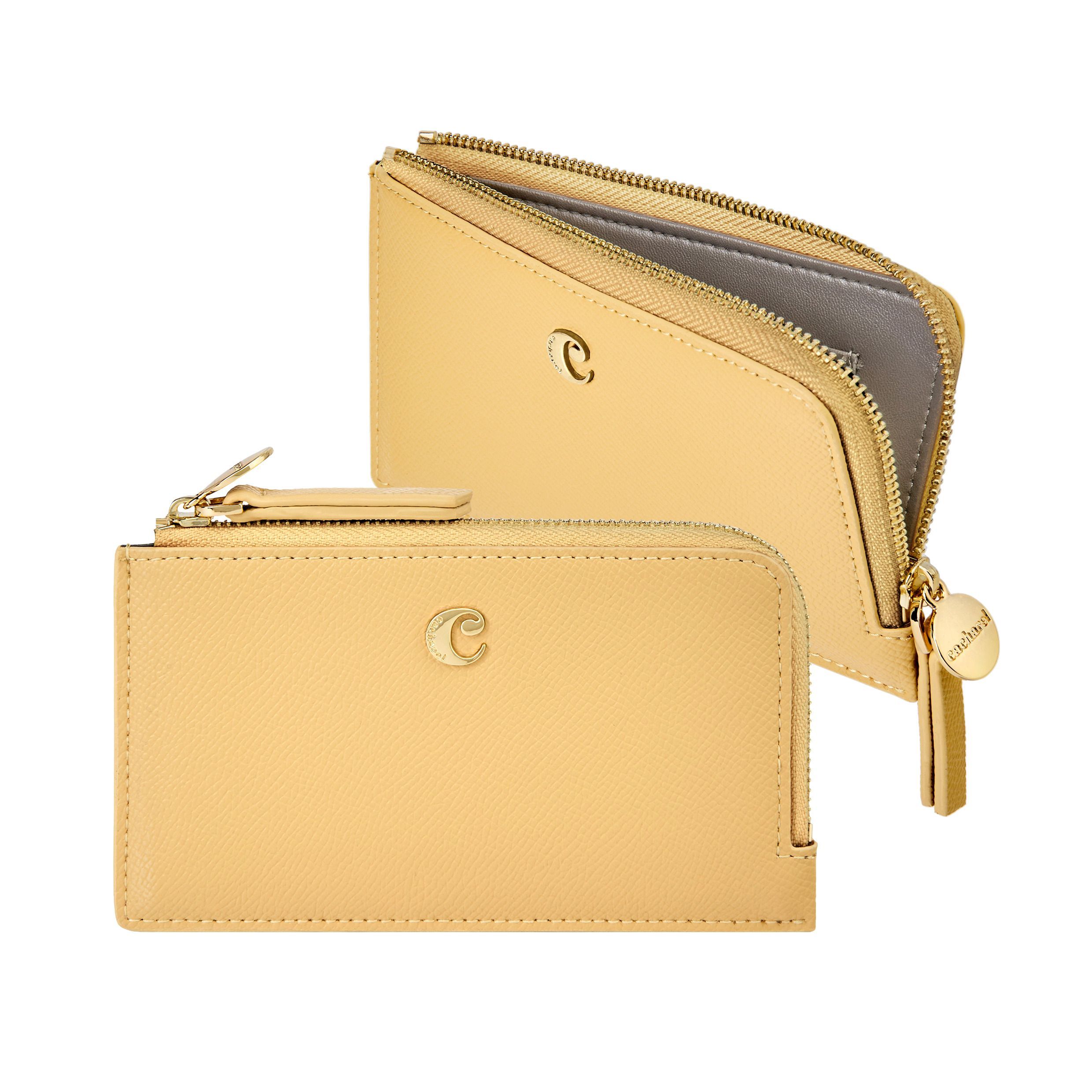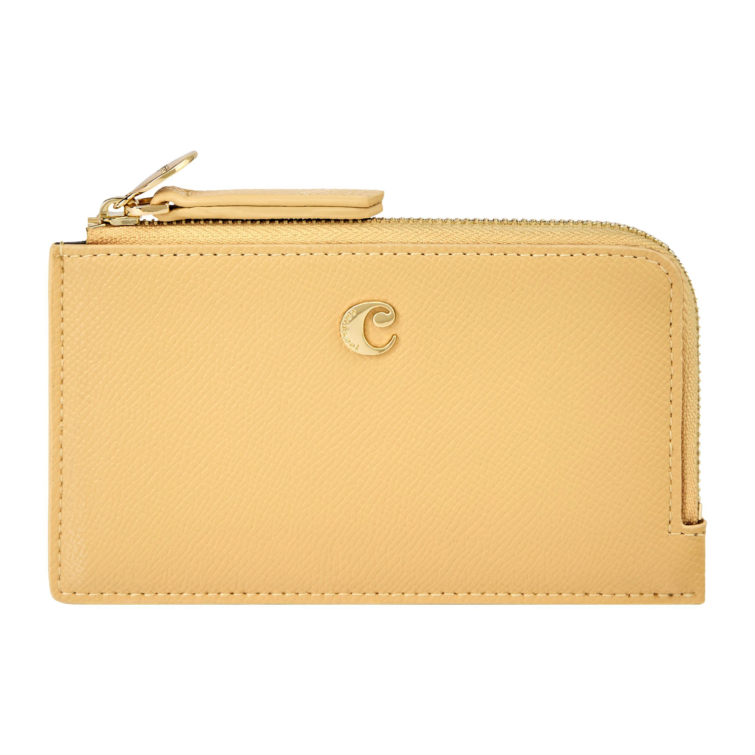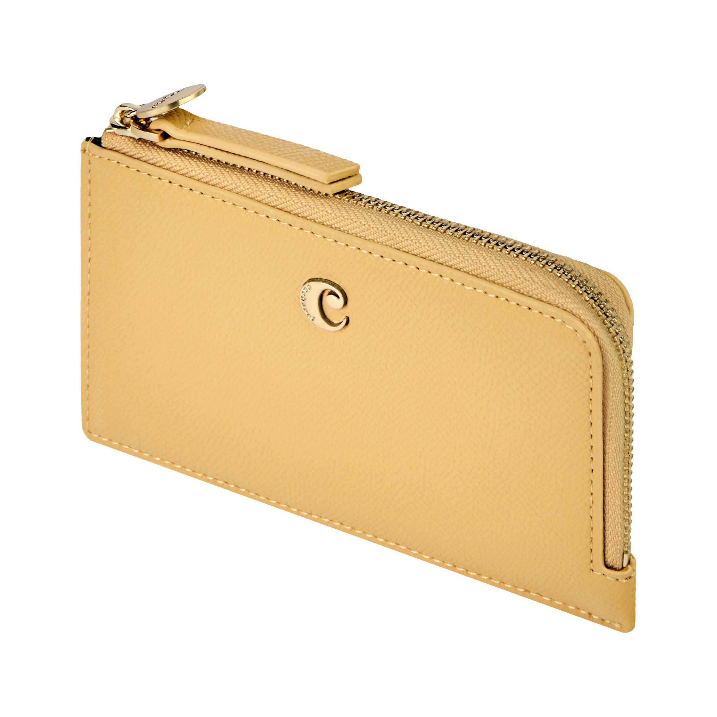 Etui na karty Seraphine łączy praktyczność z nutą figlarnej elegancji. Ten długi, zapinany na zamek model został wykonany z pięknej wegańskiej skóry o fakturze saffiano z luksusowym, matowym wykończeniem. Z przodu znajduje się złota blaszka w kształcie litery C, a na suwaku znajduje się elegancka metalowa blaszka. Pojemna komora główna ułatwia organizację, a z tyłu znajduje się jedna wewnętrzna przegródka na karty i pięć dodatkowych przegródek na karty. Funkcjonalny, a zarazem stylowy dodatek na co dzień. Ta żółta wersja ma kontrastową, szarobrązową podszewkę, która dodaje temu akcesorium dodatkowego uroku.