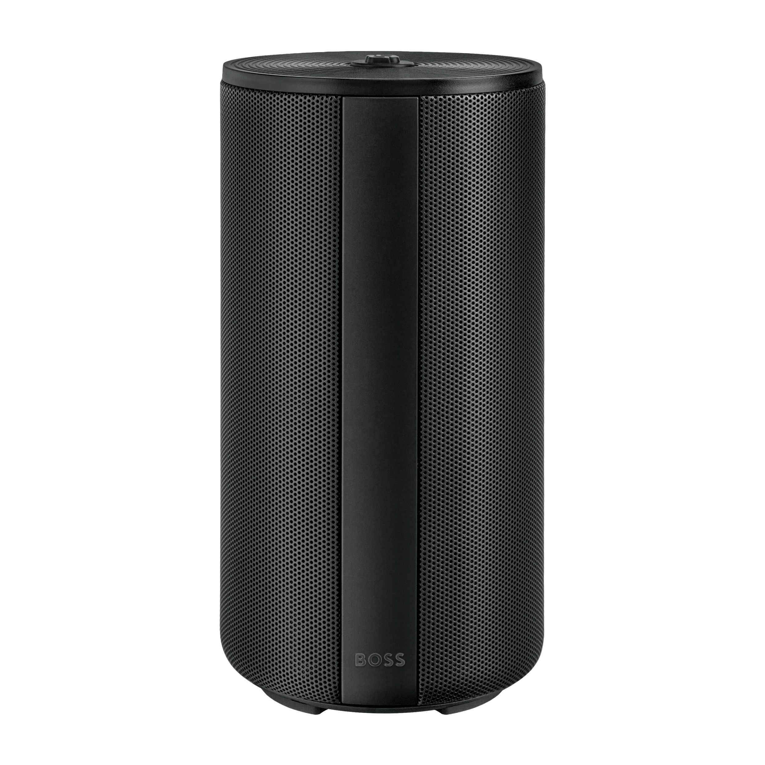 Duży głośnik Elemental łączy w sobie mobilność z wyrafinowaną, architektoniczną prezencją, podkreśloną metalizowanym wykończeniem i czystymi, pionowymi detalami. Logo Double B wieńczy główny przycisk sterujący, a subtelny podpis BOSS stanowi podstawę projektu. Głośnik o mocy 20 W (2×10 W) oferuje 10 godzin pracy na baterii i wygodne ładowanie przez USB-C. Dostępny w kolorze czarnym, srebrnym i metalizowanym kolorze camelowym.