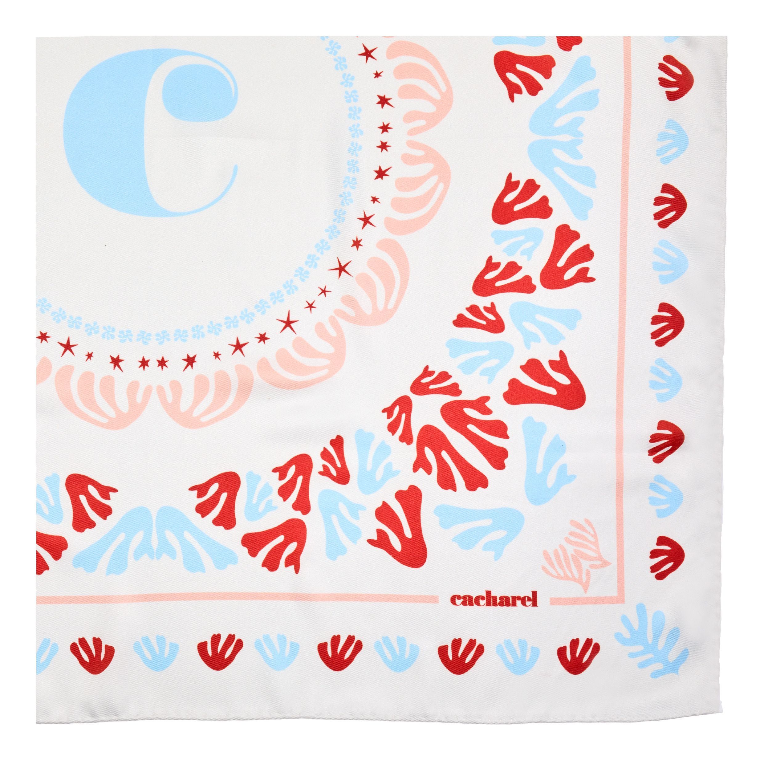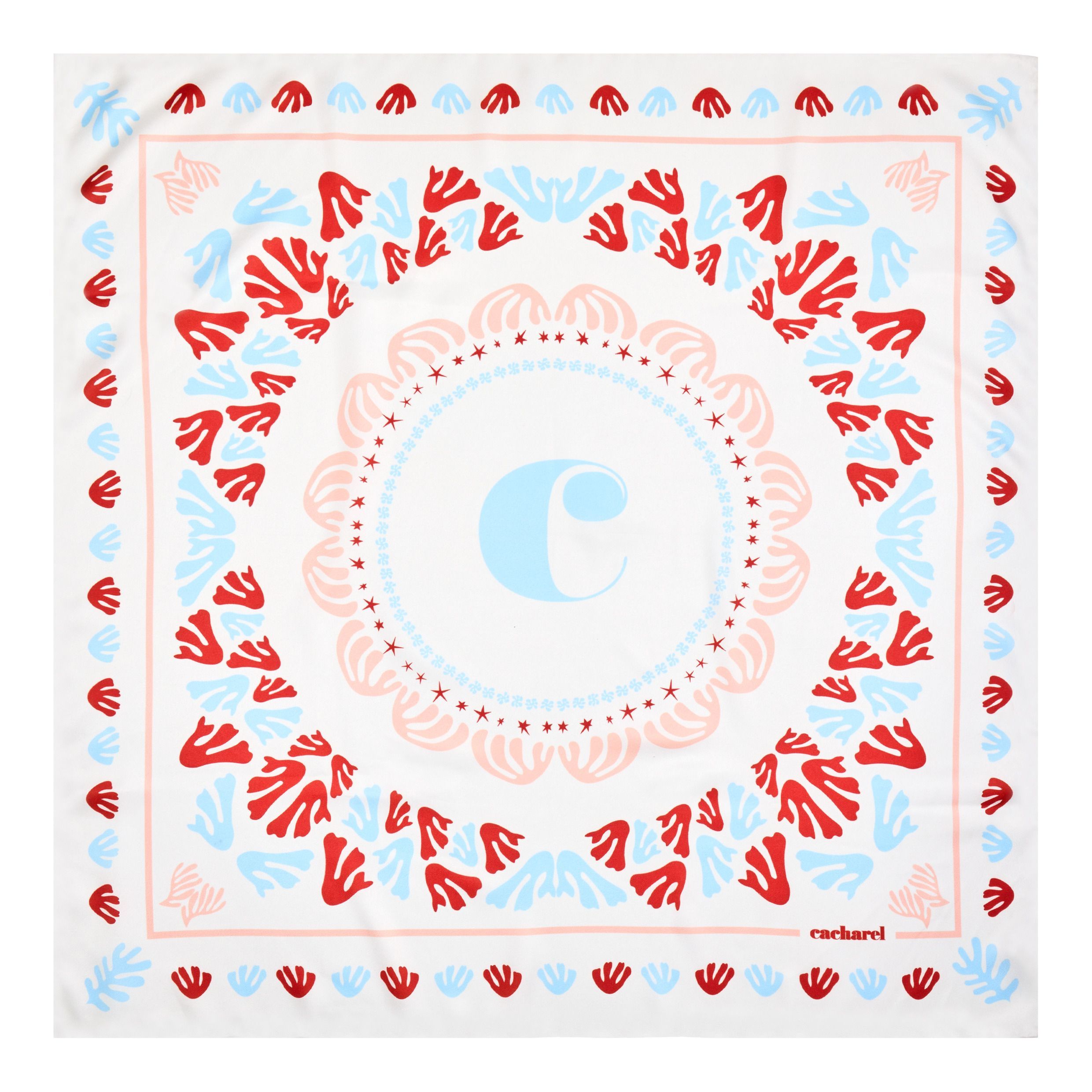 Szalik `Vivienne` w kolorze złamanej bieli ma abstrakcyjny wzór inspirowany naturą, z organicznymi kształtami i paletą kolorów, która jest zarówno miękka, jak i odważna. Nowoczesne podejście do DNA marki Cacharel łączy ponadczasową elegancję ze współczesnym kunsztem. Ozdobiony emblematycznym logo `C`, ten szalik o wymiarach 65 x 65 cm dodaje charakterystycznego akcentu każdemu strojowi. Wykonana z wegańskiego jedwabiu (poliester twill).