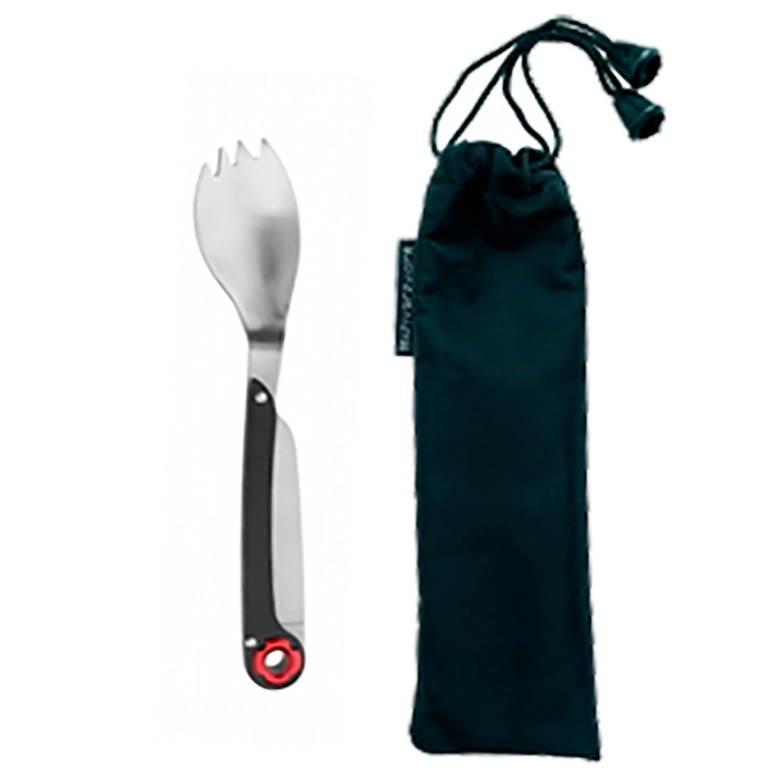 Wielofunkcyjne sztućce marki Schwarzwolf 3w1. Zawierają: składany nóż, łyżkę zakończoną ząbkami, która służy również jako widelec. Pakowane w woreczek i oryginalne pudełko Schwarzwolf.
