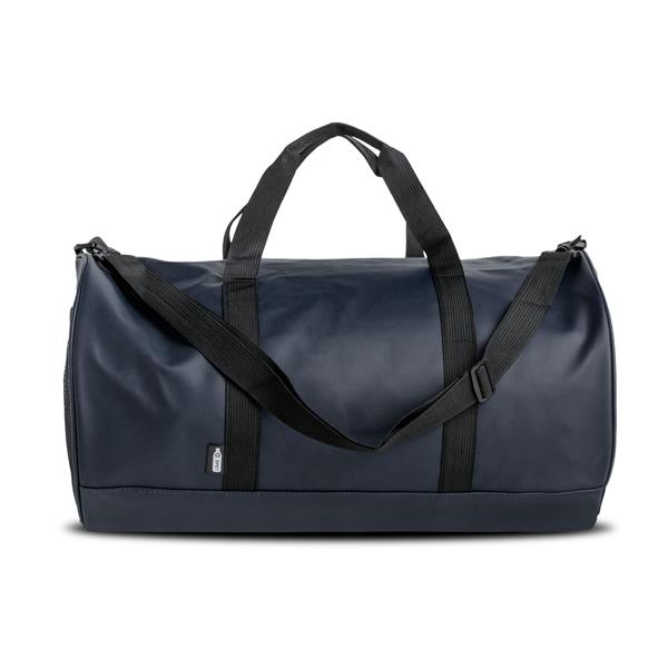Torba weekendowa / sportowa wykonana z materiału 600D RPET z powłoką PU, z podszewką z poliestru RPET 210D. Wszechstronna, trwała i nowoczesna – idealna w podróży, na siłownię lub na weekendowe wyjazdy. Wykonana z wytrzymałych materiałów (powłoka PU + poliester 210D), posiada główną komorę zapinaną na zamek, przednią kieszeń na suwak oraz kieszenie boczne zapewniające dodatkowe miejsce do przechowywania. Wyposażona w dwa uchwyty do noszenia w dłoni oraz regulowany pasek na ramię, który zwiększa komfort i funkcjonalność. Dostępna w kilku wariantach kolorystycznych – stanowi idealne połączenie stylu i praktyczności.