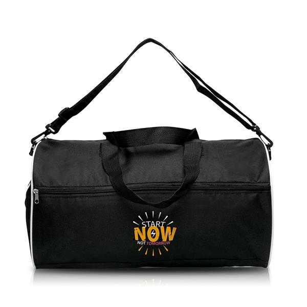Pojemna torba sportowa z poliestru 600D, z boczną kieszenią na obuwie.