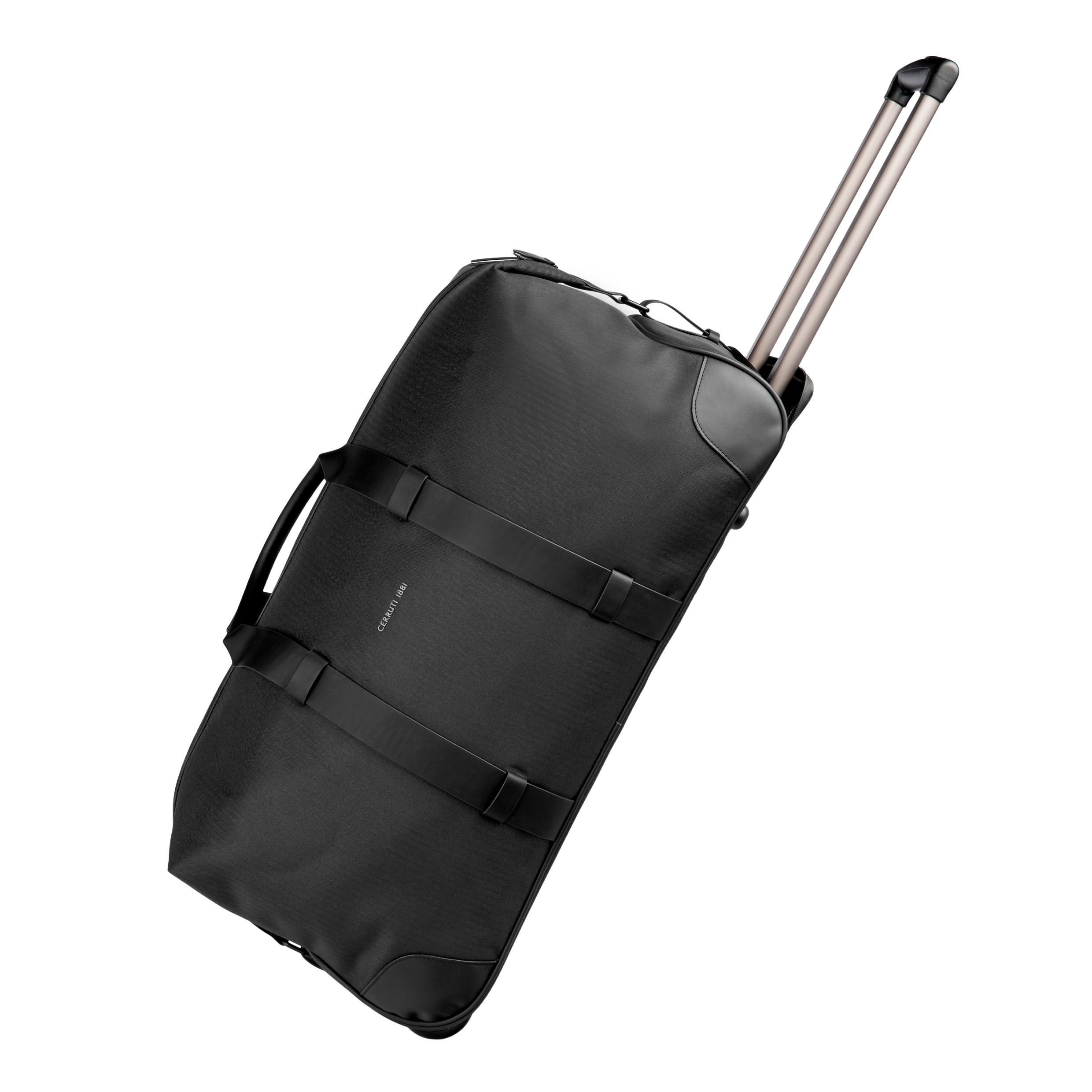 Wózek Holborn w kolorze czarnym łączy klasyczny design z nowoczesnym stylem. Wykonany z innowacyjnej tkaniny o wykończonej fakturze, posiada minimalne logo TPU i jest połączony z matowym czarnym PU dla modnego, męskiego akcentu. Inspirowany tradycją garniturową, ale z nowoczesnym akcentem, ten miękki wózek jest pojemny, stylowy i praktyczny. Rzadki dodatek do kolekcji Cerruti, jest doskonałym towarzyszem podróży. Sygnowany eleganckim logo w kolorze brązu, jest idealnym wyborem dla tych, którzy cenią sobie zarówno elegancję, jak i funkcjonalność podczas podróży.