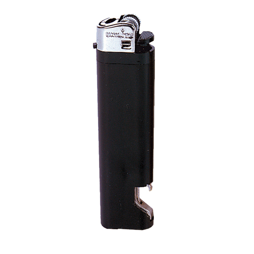 Plastikowa zapalniczka jednorazowa z otwieraczem do butelek.