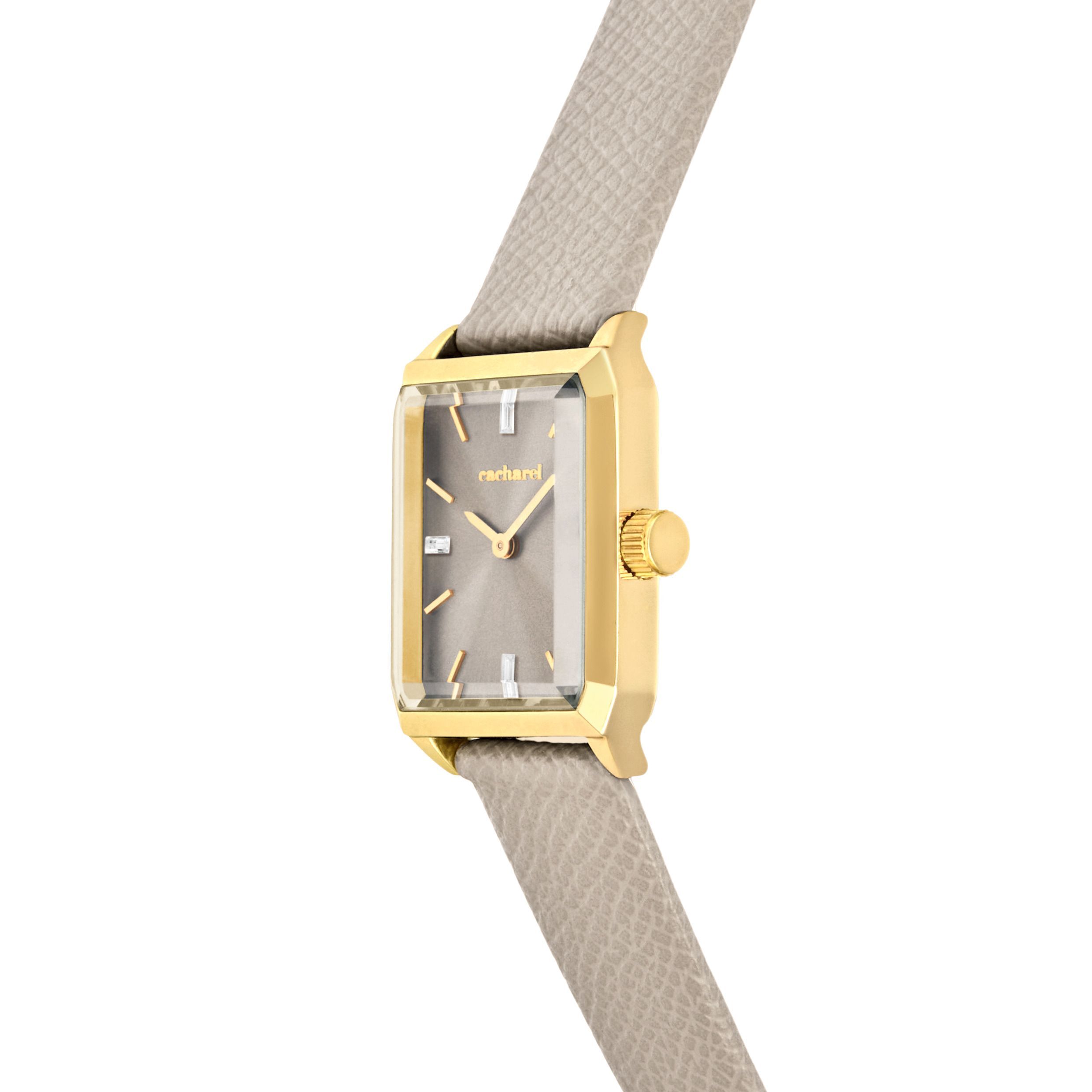 Zegarek Séraphine wyróżnia się elegancką bransoletą z wykończeniem Saffiano i idealnie proporcjonalną, kanciastą kopertą, która emanuje wyrafinowaniem i delikatnością bez przesady. Tarcza z wykończeniem słonecznym jest ozdobiona drobnym kryształowym detalem, który dodaje subtelnego blasku. Dostępny w kolorze taupe, czarnym, granatowym lub jasnoszarym, zegarek doda ponadczasowego, eleganckiego charakteru każdej stylizacji.